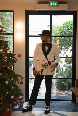 Men's White Double Breasted Tuxedo Two Piece Suit For Wedding Engagement Groom Prom Dinner Party Wear