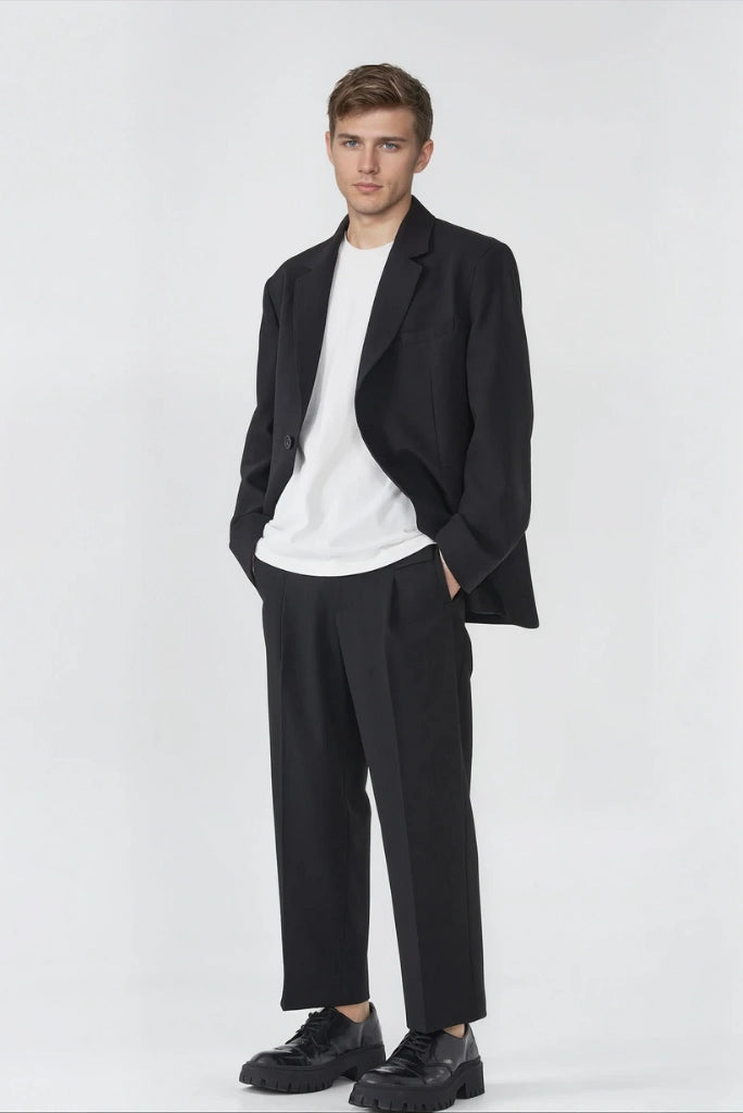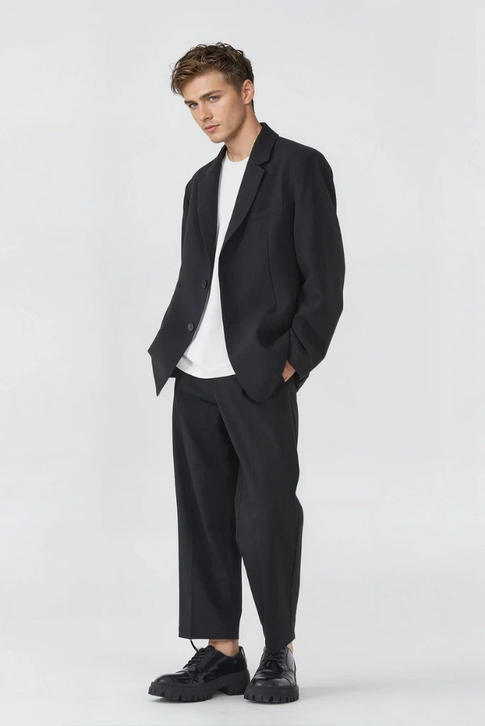 Coat Features: This is a black stylish men's relaxed fit two piece suit. The blazer of this suit has a collar with notch lapel which gives a classic look. The blazer has one welt pocket and two patch pockets on the front which looks very elegant. The sleeves and front closure of the blazer have polyester buttons. This is a Loose fit suit which is a bit loose and comfortable. This suit will give you a vintage style look and is very much in trend in today's time and is also a great choice for men.