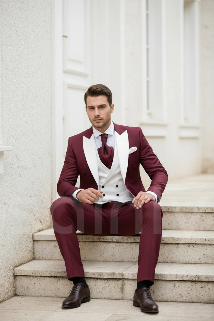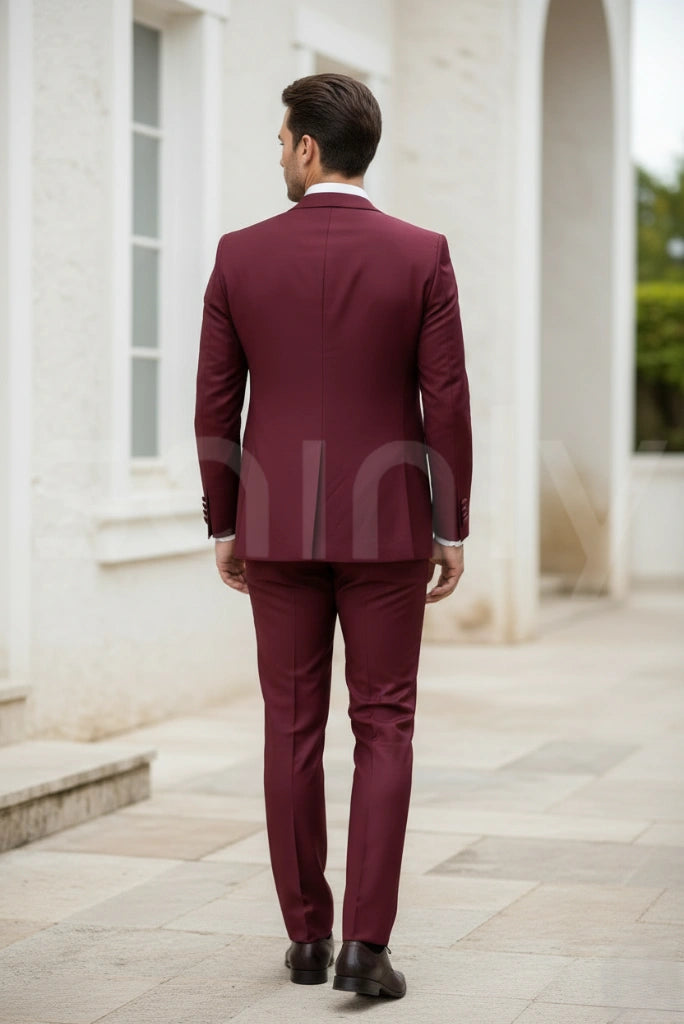 This men’s three-piece suit is crafted from imported premium TR fabric, known for its durability, smooth texture, and comfortable feel. The maroon blazer and trousers are paired with a contrasting white waistcoat for a refined and modern look. The breathable TR blend offers wrinkle resistance, shape retention, and a polished finish that lasts all day. Perfect for engagements, parties, dinners, weddings, and other special occasions, this suit delivers a smart, elegant, and sophisticated appearance.