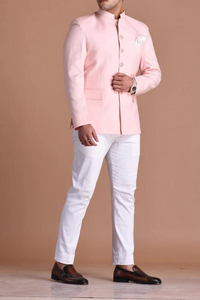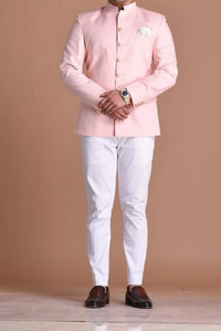 Jodhpuri Suit For Men Light Pink Maharaja Style Bandhgala Suit With White Trouser Wedding Suit Perfect Party Wear