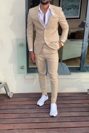 Check out our cream two-piece wedding suit for men. Ideal for weddings and formal dinners, this suit includes a tailored coat and matching pants, made from top-quality fabric. Purchase today at Sainly to flaunt your outfit at unforgettable events.