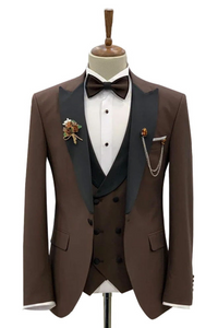 Men Brown Tuxedo Suit Three Piece Wedding Suit Slim Fit Suit Tuxedo Outwear Elegant Clothing Suit Bespoke