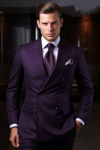Elevate your formal ensemble with our Dark Purple Double Breasted Dinner Suit. Crafted with imported, premium fabric, this 2-piece suit exudes sophistication. Perfect for weddings and formal events. Includes coat and pants. Dry clean recommended for long-lasting elegance.