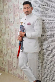 Designer Stylish White jodhpuri Bandgala suit for men for wedding party reception and events and festive